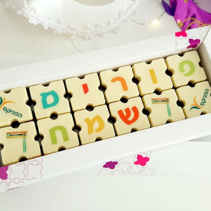 מארז פרלינים איכותיים בעבודת יד, ניתן להדפיס על השוקולדים שלנו כל תמונה, סמל, לוגו או כיתוב אחר לבחירתכם