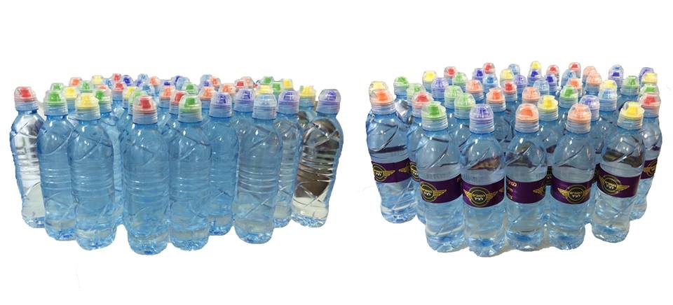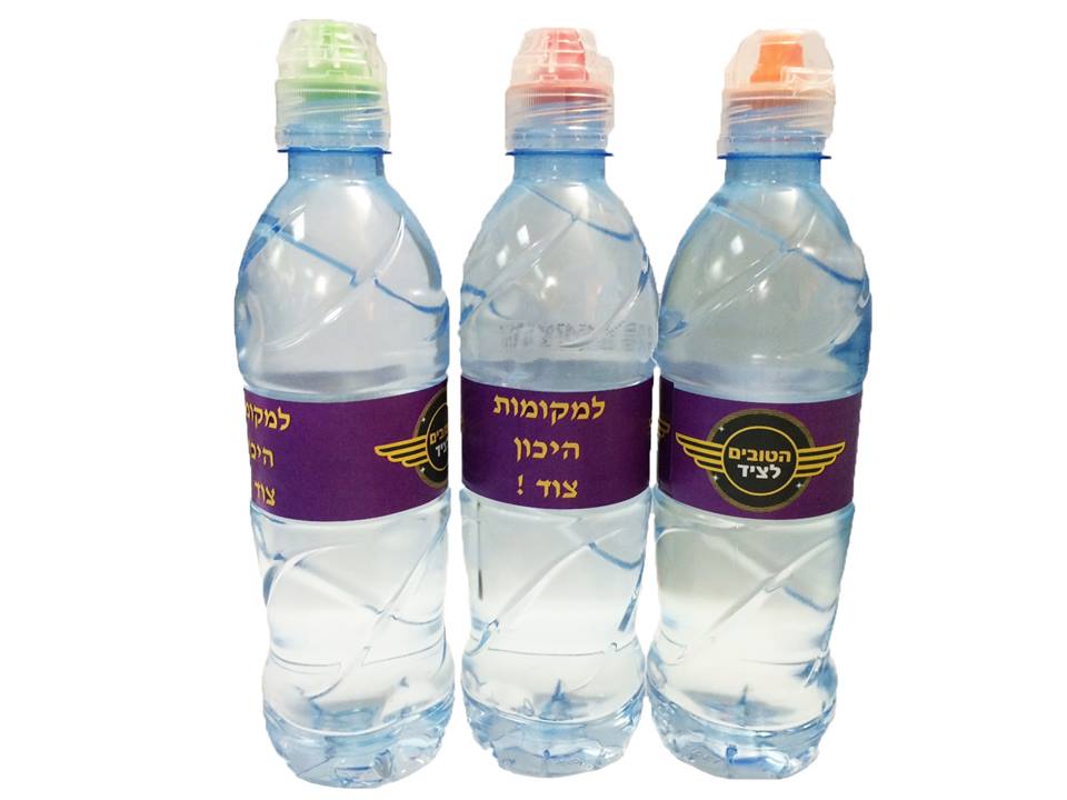 בקבוק מים חצי ליטר פקק ספורט עם מדבקת ויניל בעיצוב אישי