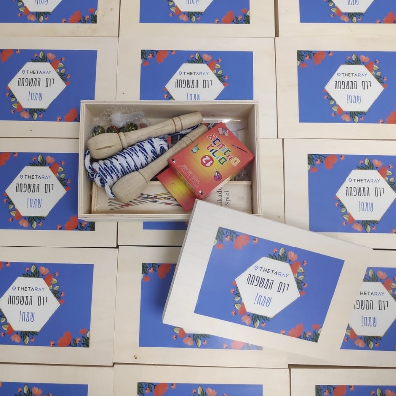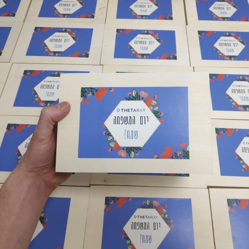 תיבת עץ כולל מיתוג צבעוני במדבקה