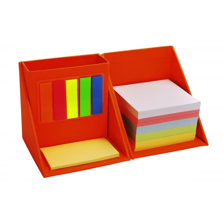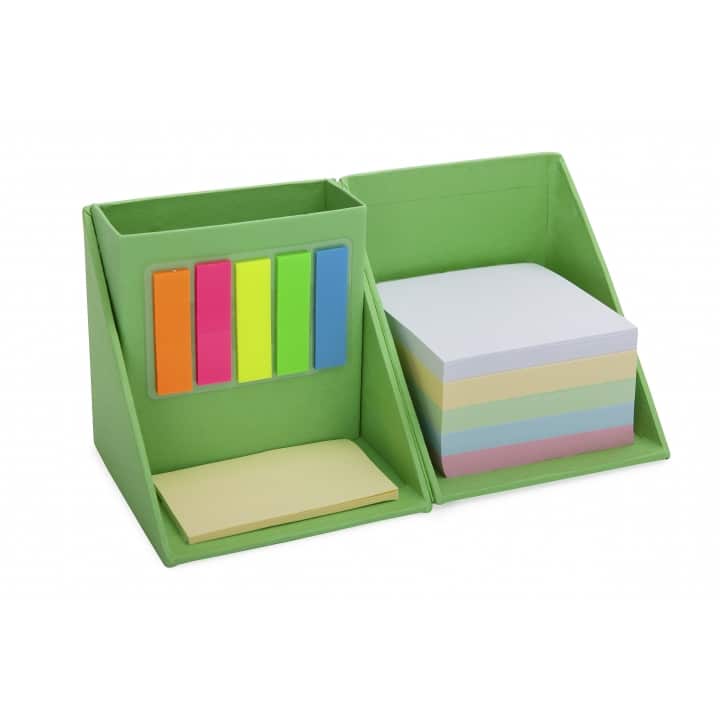 מעמד שולחני בצורת קובייה הכולל: ניירות, דביקים,דמי ממו ומקום לעטים