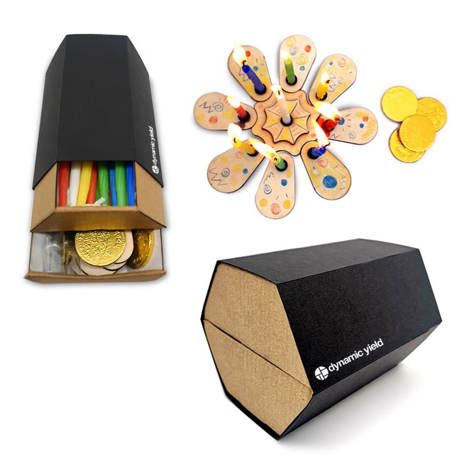 מכיל: 44 נרות, חנוכיית עץ לצביעה והרכבה לצורת פרח