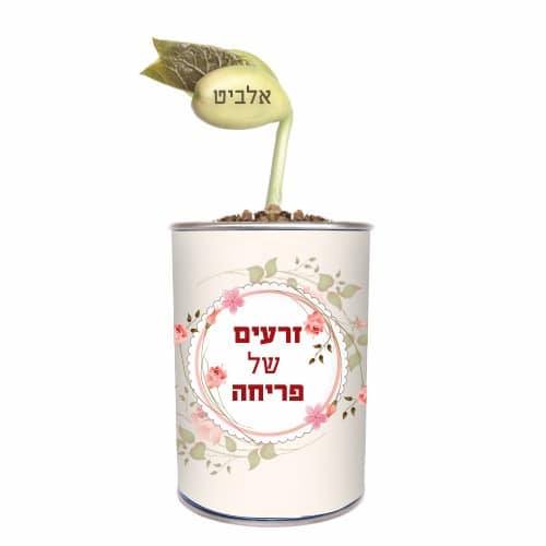 פחית הקסם- פחית ממותגת המכילה נבט עליו חרוט שם לבחירתכם, לאחר כשבוע הנבט הופף לצמח עליו מופיע השם שבחרתם.