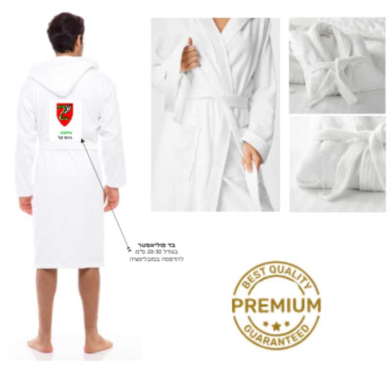 חלוק מגבת עם כובע, חגורה ו-2 כיסים