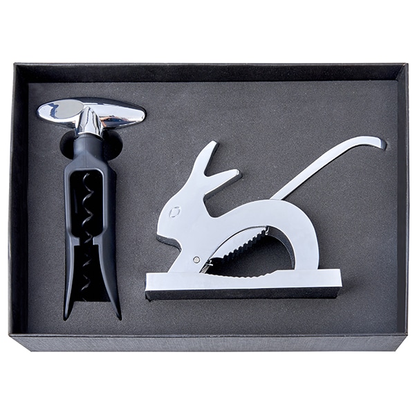 "RABBIT" מארז אביזרים 2 חלקים פותחן יין ומפצח אגוזים באריזת מתנה מהודרת