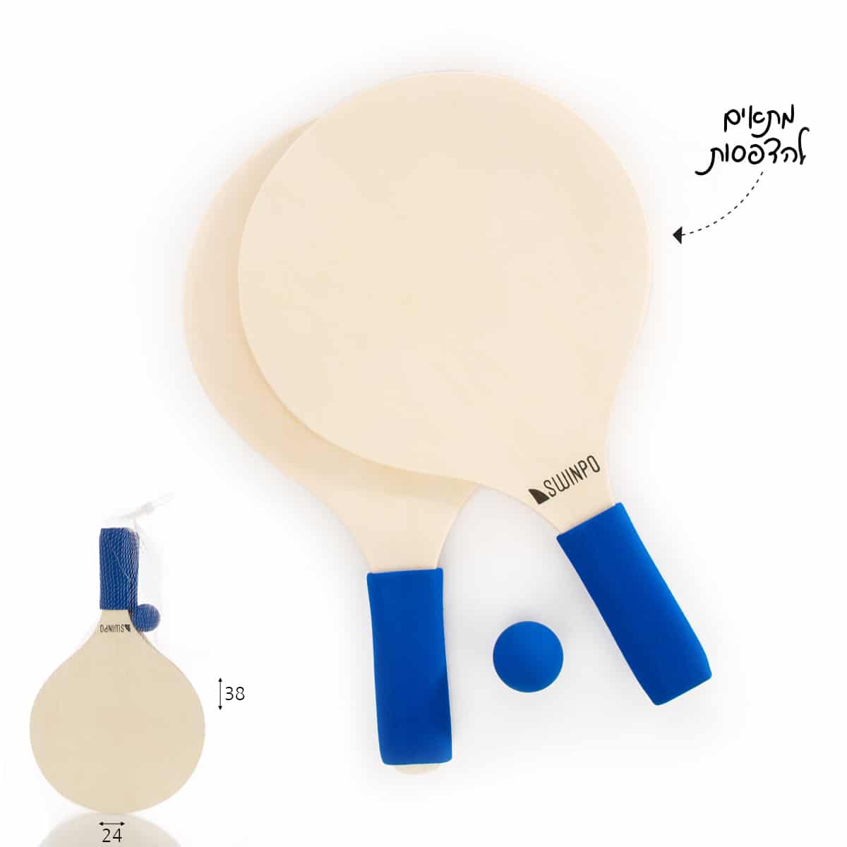 מטקות עץ ברשת ידית ספוג 8.0*24*38