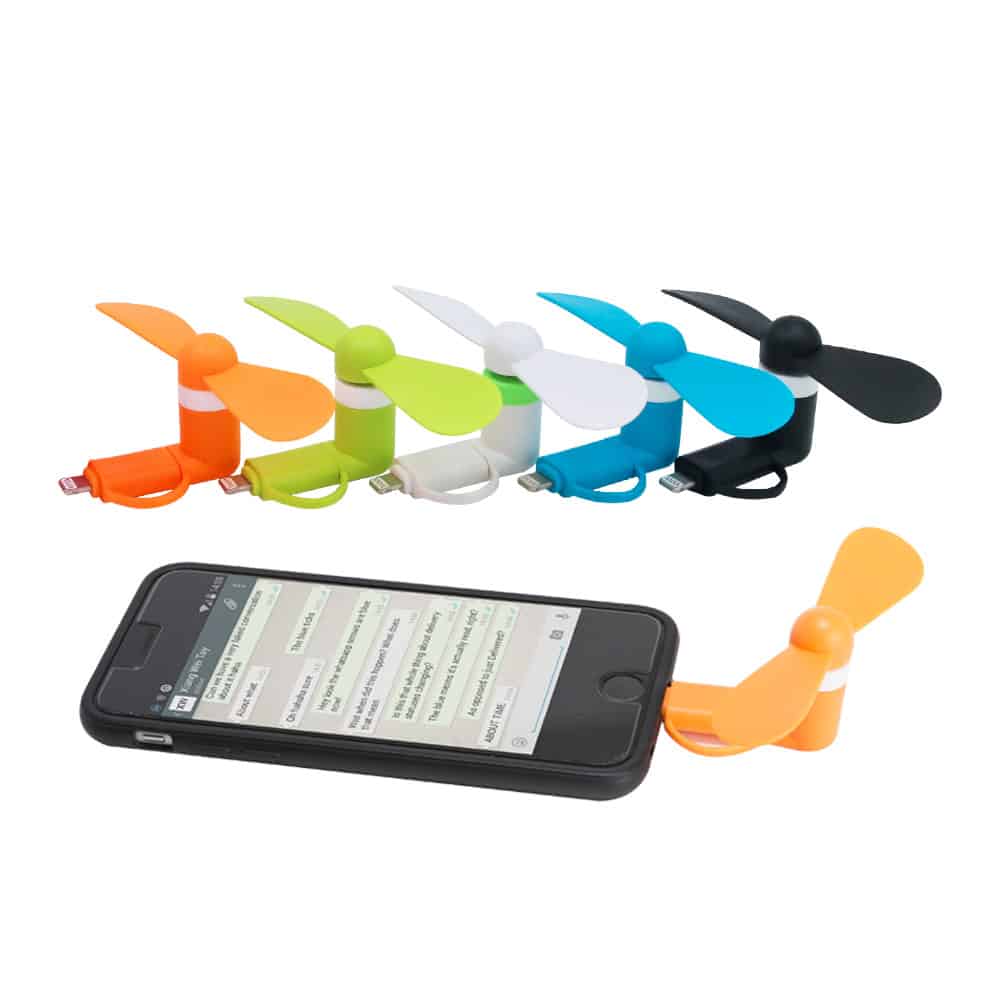 מאוורר נייד מעוצב המתחבר לשקע הטעינה של המכשיר הסלולרי