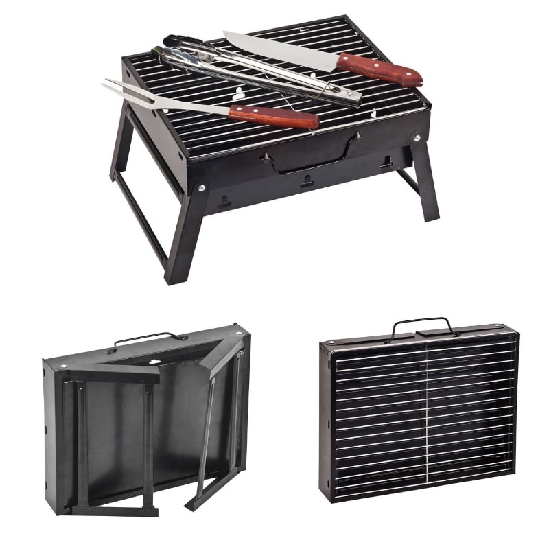 מנגל מתקפל כולל סכין, מזלג ומלקחיים