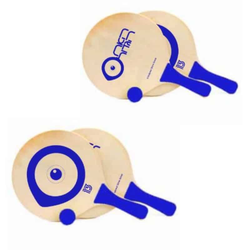 זוג מטקות עשויות עץ עם ידית צבעונית וכדור תואם