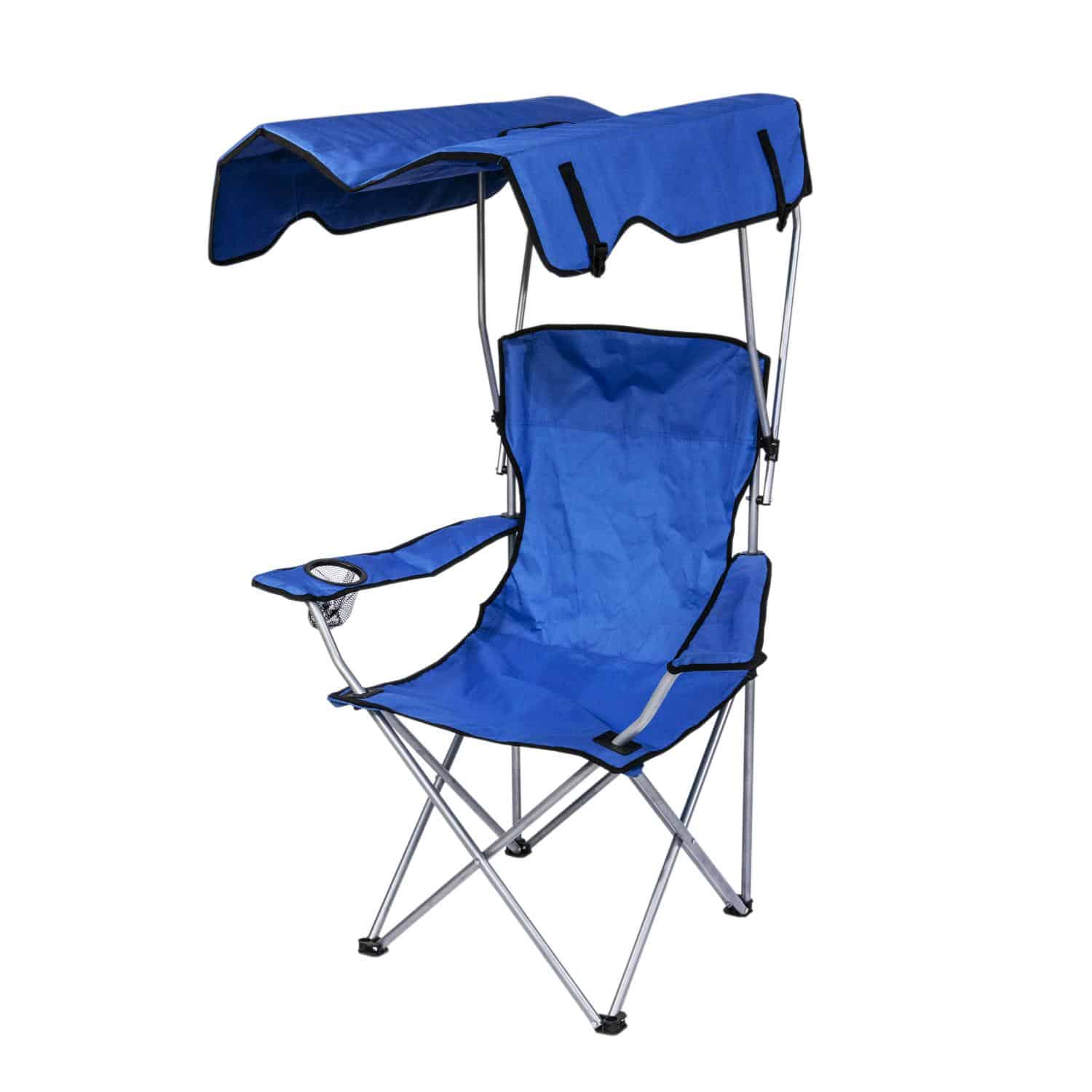 כיסא במאי עם גגון מתקפל כולל מקום לכוס או בקבוק.