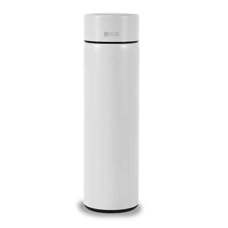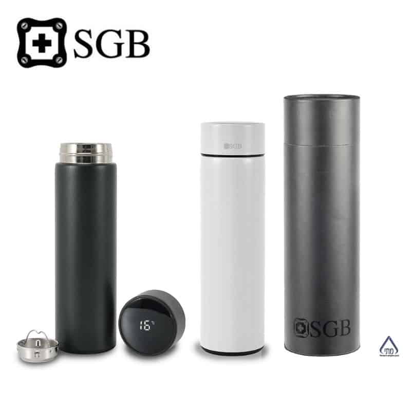 בקבוק בעל עיצוב ייחודי עם צג דיגיטלי המראה את טמפרטורת המשקה