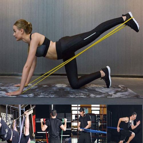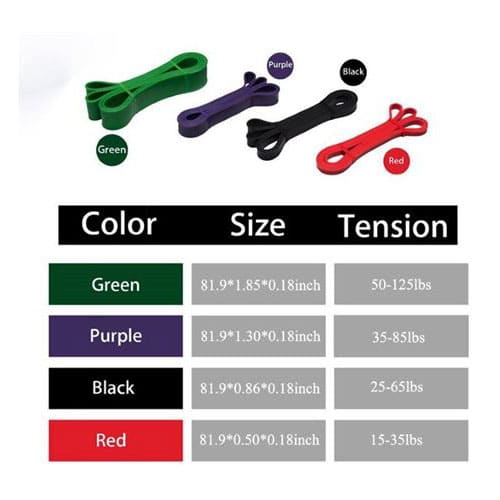הערכה כוללת ארבע גומיות מתיחה בדרגות קושי משתנות[ללא הצהוב]