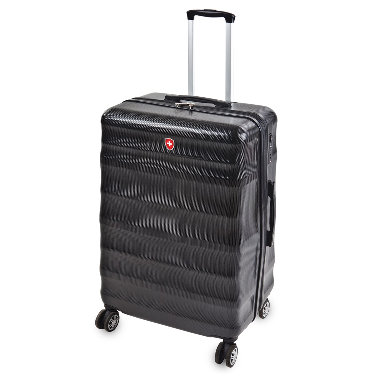 מזוודות Swiss – בגודל "28, עשויה מ-100% PC, מתרחבת, מנגנון אלומיניום, שתי ידות אחיזה, 4 גלגלים, מנעול TSA, אחריות 3 שנים.