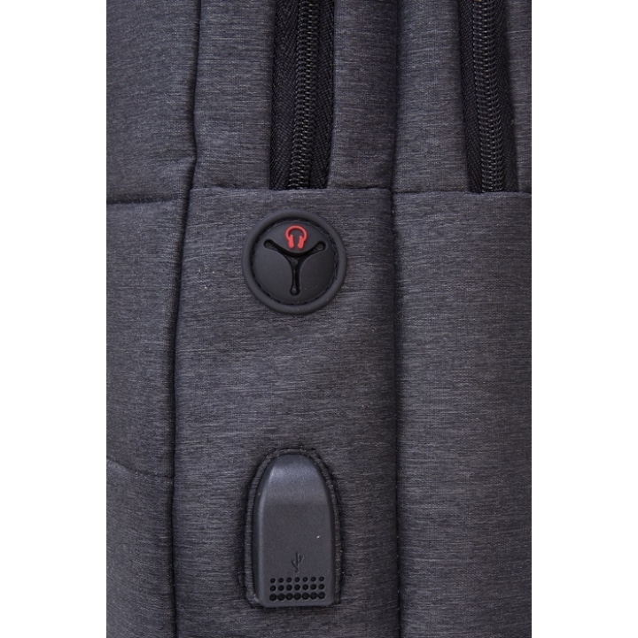 *שני תאים מרכזיים עם מקום יעודי ללפטופ ואייפד. תא רוכסן קדמי,שקע USB ויציאת AUX
