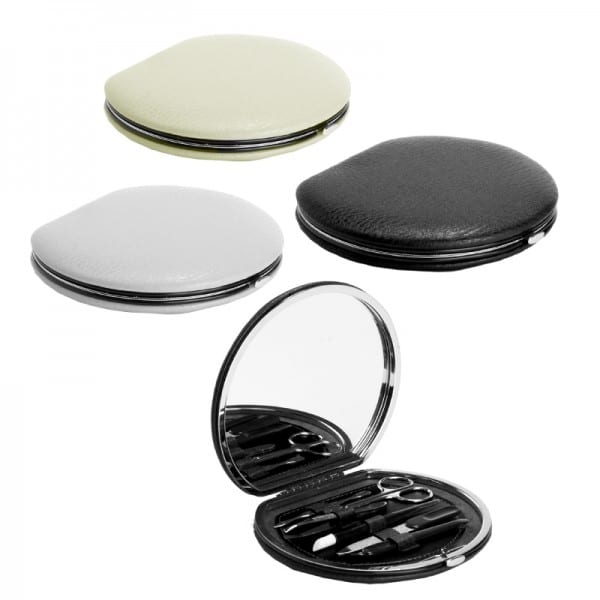 סט מניקור פדיקור מעוצב עם 5 חלקים ומראה במארז יוקרתי דמוי עור