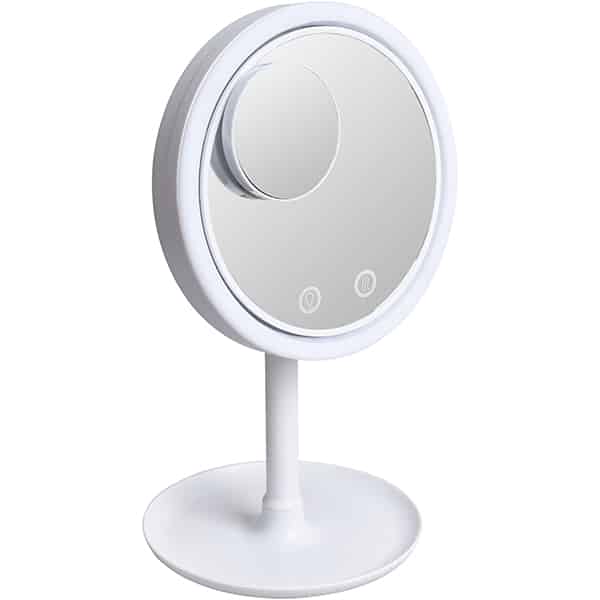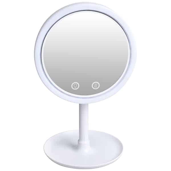 מראת איפור מקצועית משולבת עם תאורת לד היקפית ומאוורר מובנה נסתר