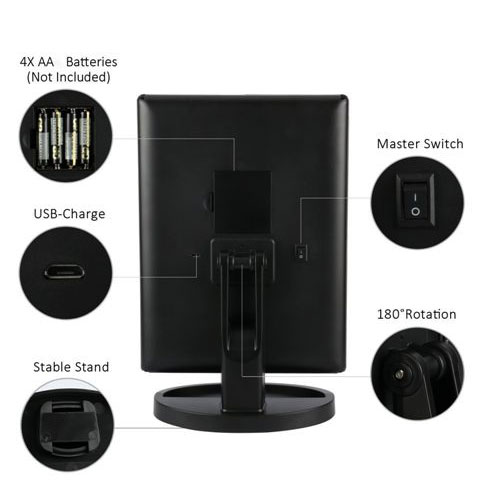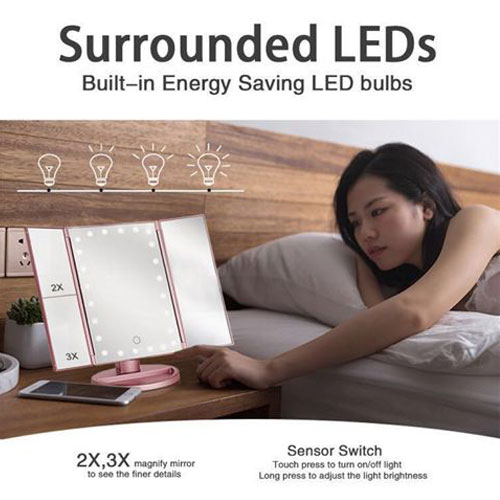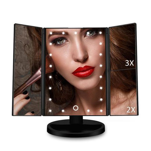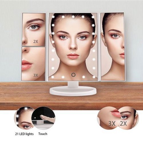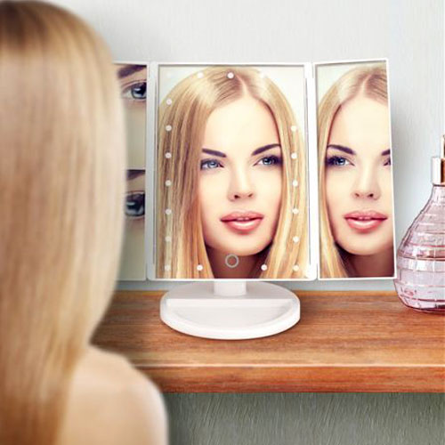 מראה מקצועית עם תאורת LED משולבת במראות נוספות עם הגדלות שונות