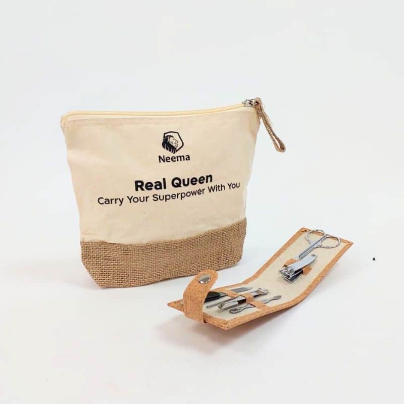ערכת מניקור 6 חלקים עם נרתיק שעם טבעי בסגירת תי-תק מתכתי
