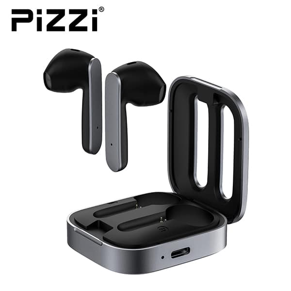 זוג אוזניות מיני משודרגות PiZZi BLUE TOOTH EarBuds איכותיות עם בית טעינה קומפקטי, עם 6 שעות עבודה, ביטול רעשים , BT ver 5.0
