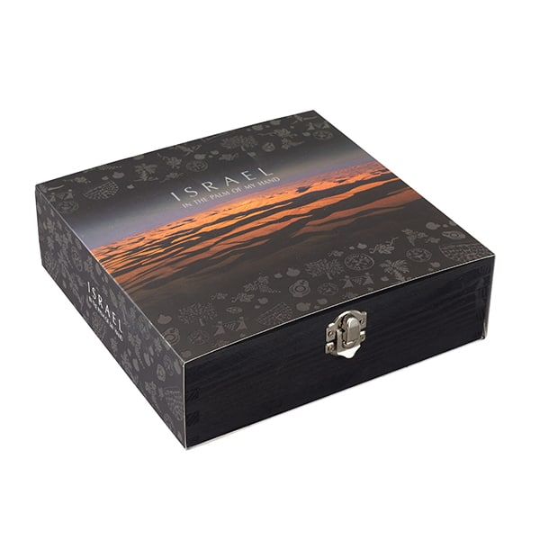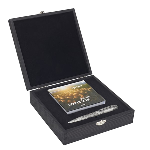 מארז עץ "ארץ ישראל בכף היד" הכולל אלבום תמונות צילומי אוויר 320 עמוד ועט תבליט ארץ ישראל