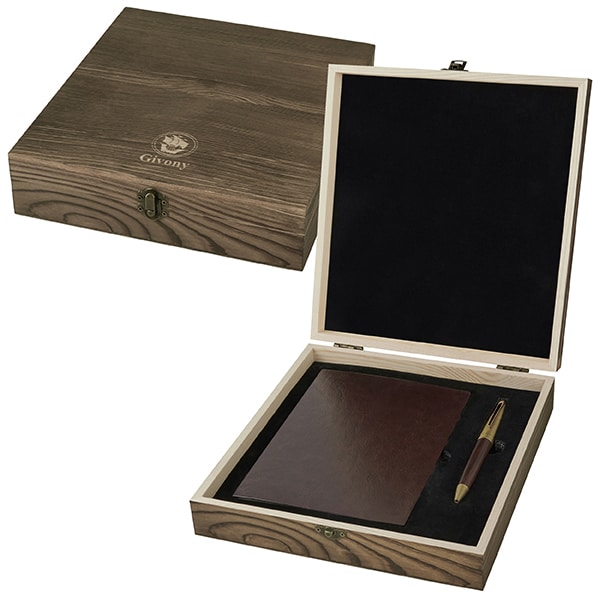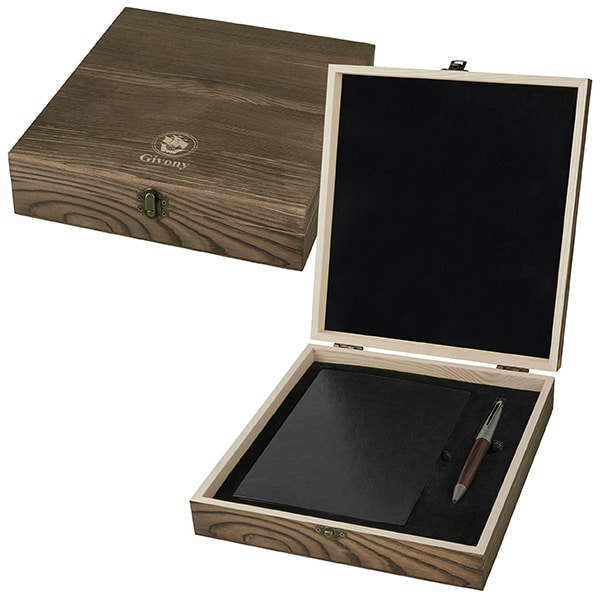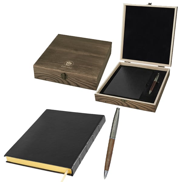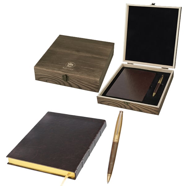 ערכת מתנה מהודרת הכוללת עט X-PEN מחברת עסקים במארז עץ מבית המותג גבעוני