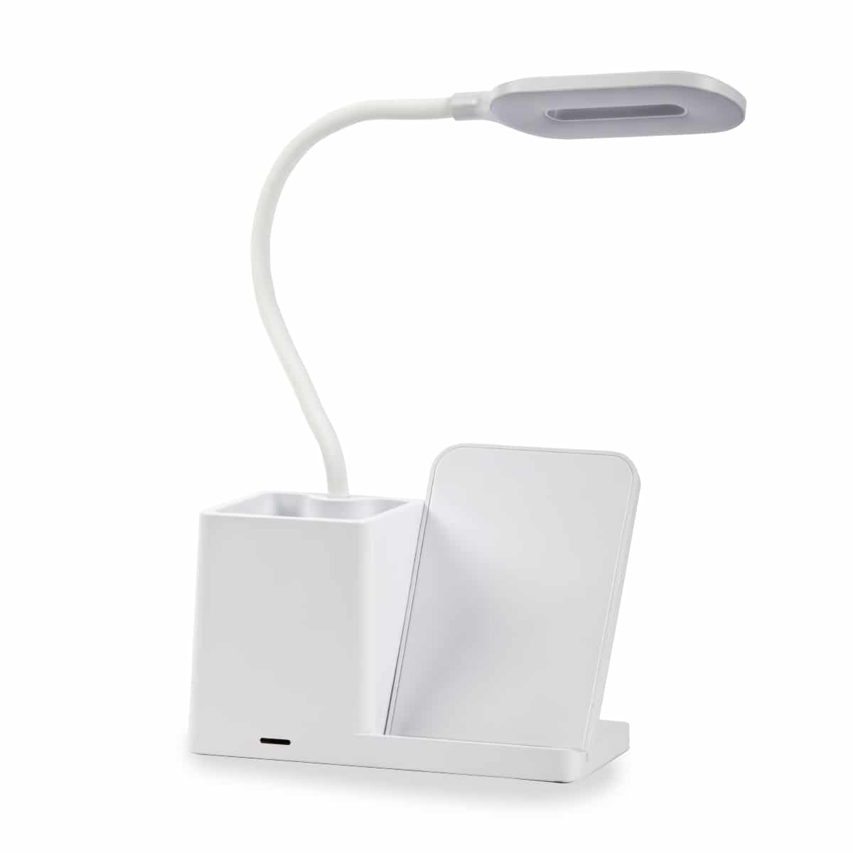 מטען אלחוטי מהיר 15W עם מנורה ומעמד שולחני.