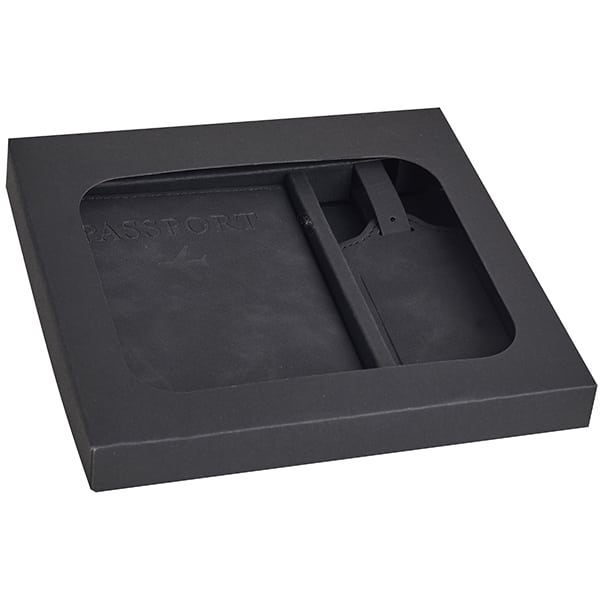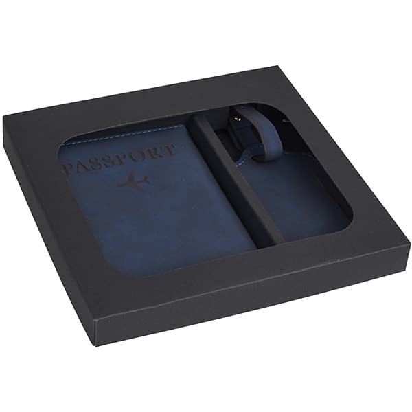 סט נסיעות כולל כיסוי לדרכון ותג מזוודה דמוי עור PU במארז מתנה