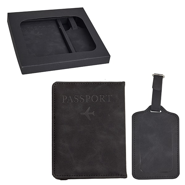 סט נסיעות הכולל כיסוי לדרכון ותג מזוודה