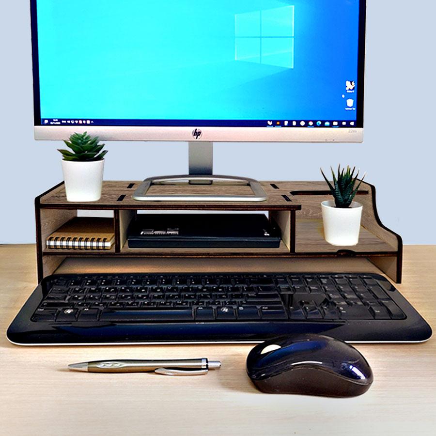 שומר על ארגון סביבת העבודה, עם מקום למקלדת, לעכבר ולמחברת