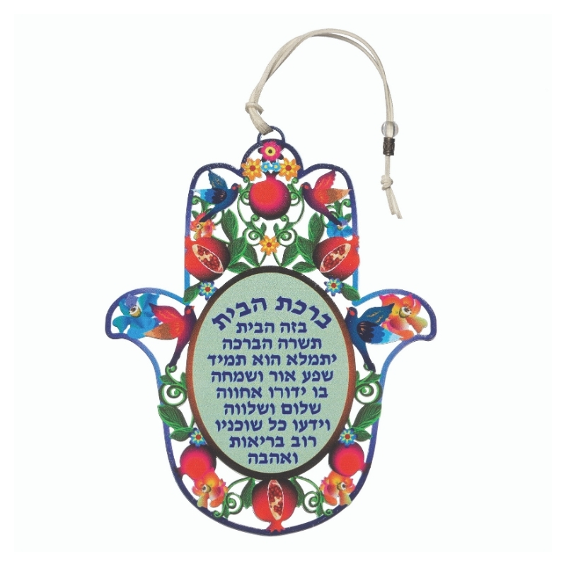 חמסה ברכת הבית פרחים עברית ממתכת 15 ס"מ
