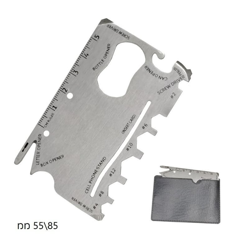 כרטיס הישרדות מתכתי מולטי פונקציות בנרתיק PVC – כולל חריטת לייזר