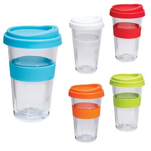 ספל טרמי זכוכית דופן כפולה לבידוד עם מכסה סיליקון