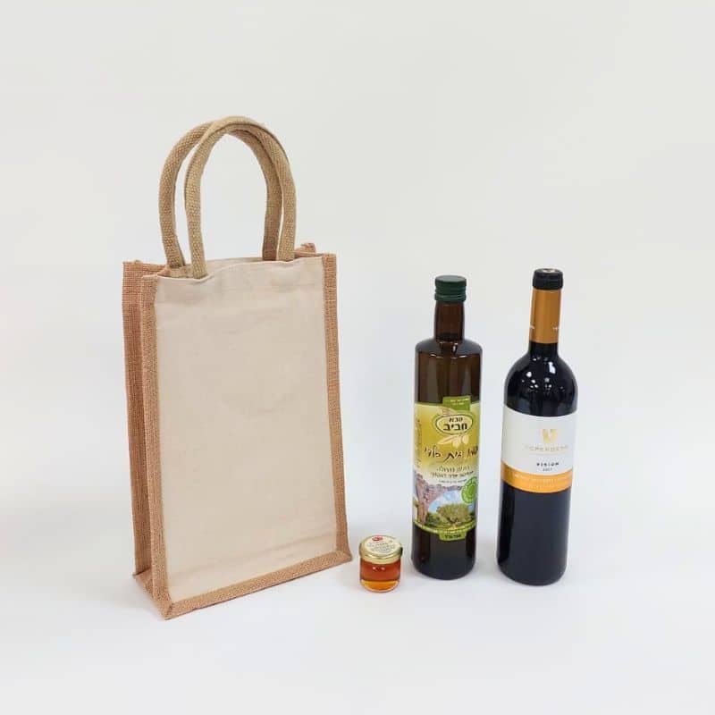 מארז כותנה משולב יוטה עם ידיות נשיאה ומחיצה פנימית לשמירה על התכולה