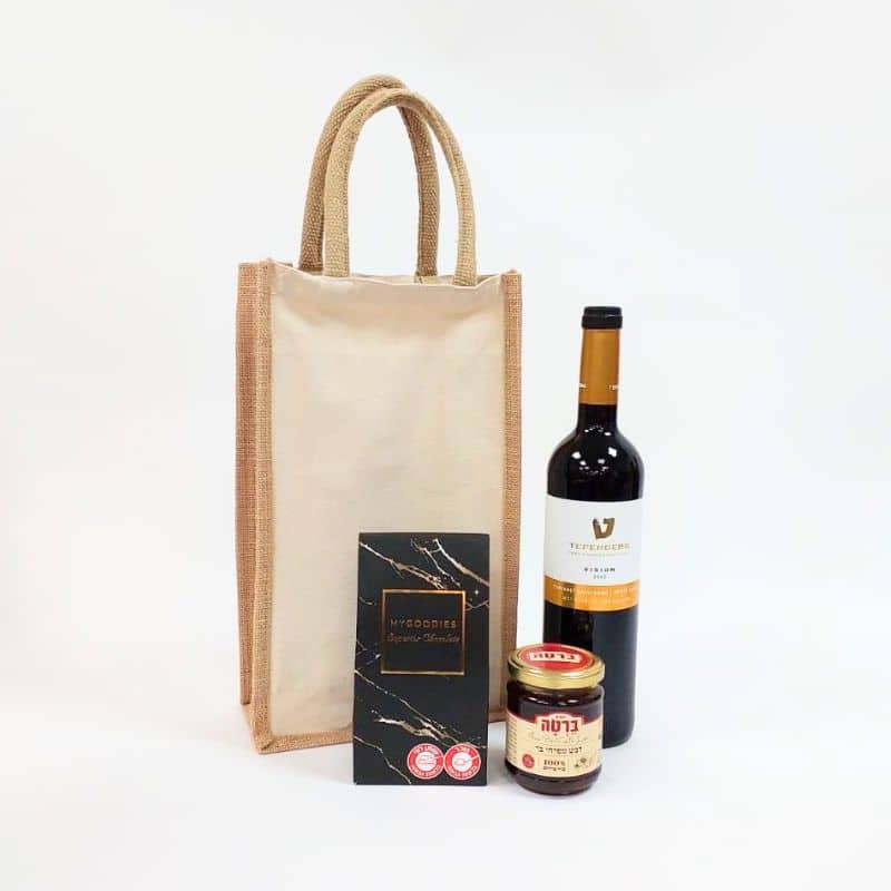 מארז כותנה משולב יוטה עם ידיות נשיאה ומחיצה פנימית לשמירה על התכולה